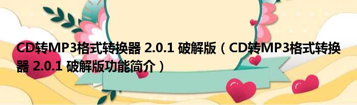 CD转MP3格式转换器 2.0.1 破解版(CD转MP3格式转换器 2.0.1 破解版功能简介)
