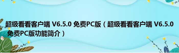 导读 大家好,关于超级看看客户端 V6 5 0 免费PC版,超级看看客户端 V6 5 0 免费PC版功能简介这个很多人还不知道,小勒来为大家解答以上的问题