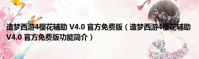 造梦西游4樱花辅助 V4.0 官方免费版(造梦西游4樱花辅助 V4.0 官方免费版功能简介)