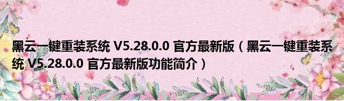 黑云一键重装系统 V5.28.0.0 官方最新版(黑云一键重装系统 V5.28.0.0 官方最新版功能简介)
