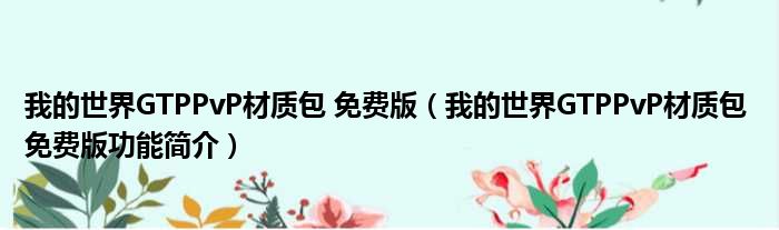 我的世界GTPPvP材质包 免费版(我的世界GTPPvP材质包 免费版功能简介)