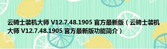 导读 大家好,关于云骑士装机大师 V12 7 48 1905 官方最新版,云骑士装机大师 V12 7 48 1905 官方最新版功能简介这个很多人还不知道,小勒来为