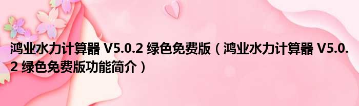 鸿业水力计算器 V5.0.2 绿色免费版(鸿业水力计算器 V5.0.2 绿色免费版功能简介)