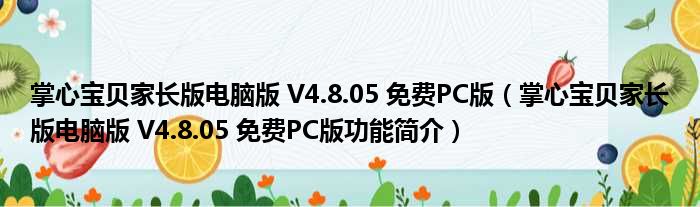 掌心宝贝家长版电脑版 V4.8.05 免费PC版(掌心宝贝家长版电脑版 V4.8.05 免费PC版功能简介)