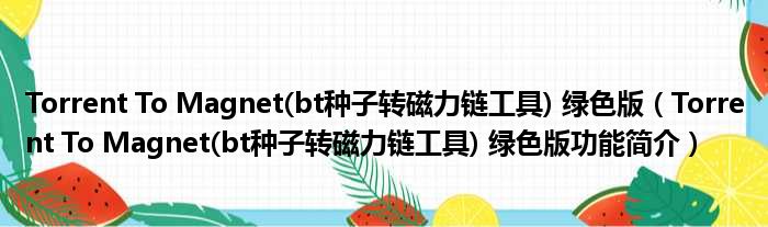 Torrent To Magnet(bt种子转磁力链工具) 绿色版(Torrent To Magnet(bt种子转磁力链工具) 绿色版功能简介)