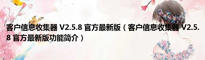 客户信息收集器 V2.5.8 官方最新版(客户信息收集器 V2.5.8 官方最新版功能简介)