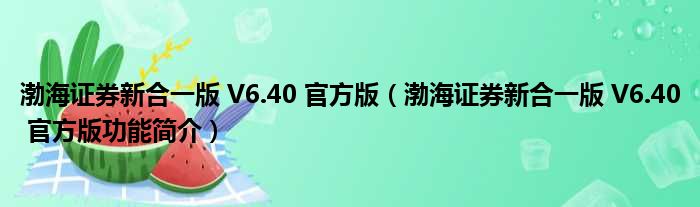 渤海证券新合一版 V6.40 官方版(渤海证券新合一版 V6.40 官方版功能简介)