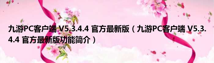 九游PC客户端 V5.3.4.4 官方最新版(九游PC客户端 V5.3.4.4 官方最新版功能简介)