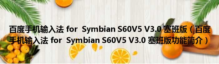 百度手机输入法 for Symbian S60V5 V3.0 塞班版(百度手机输入法 for Symbian S60V5 V3.0 塞班版功能简介)
