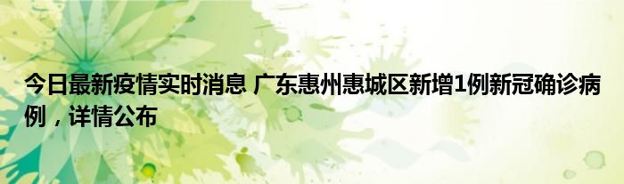 今日最新疫情实时消息 广东惠州惠城区新增1例新冠确诊病例,详情公布