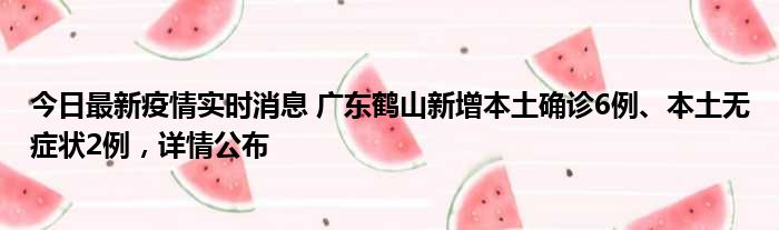 今日最新疫情实时消息 广东鹤山新增本土确诊6例、本土无症状2例,详情公布
