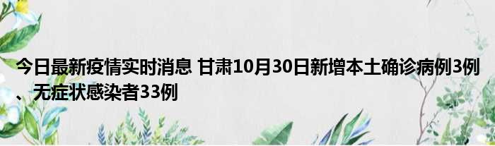 今日最新疫情实时消息 甘肃10月30日新增本土确诊病例3例、无症状感染者33例