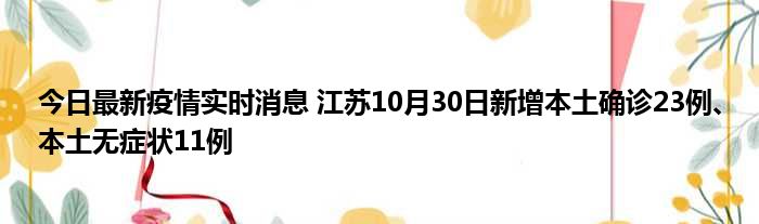 江苏卫健委通报,10月30日0-24时,江苏新增本土确诊病例23例(南京市21例,2例为无症状感染者转为确诊病例,11例为集中隔离点发现,3例为