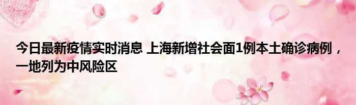 今日最新疫情实时消息 上海新增社会面1例本土确诊病例,一地列为中风险区