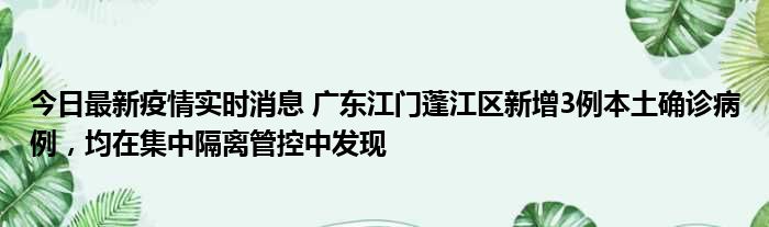 今日最新疫情实时消息 广东江门蓬江区新增3例本土确诊病例,均在集中隔离管控中发现