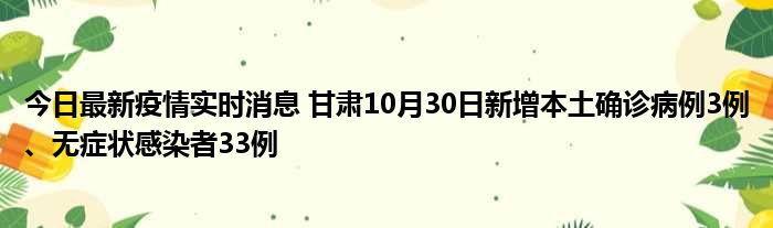 今日最新疫情实时消息 甘肃10月30日新增本土确诊病例3例、无症状感染者33例