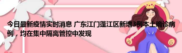 今日最新疫情实时消息 广东江门蓬江区新增3例本土确诊病例,均在集中隔离管控中发现