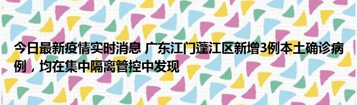 今日最新疫情实时消息 广东江门蓬江区新增3例本土确诊病例,均在集中隔离管控中发现