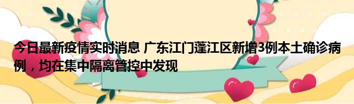今日最新疫情实时消息 广东江门蓬江区新增3例本土确诊病例,均在集中隔离管控中发现