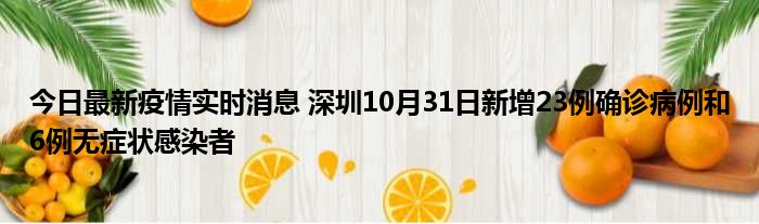 据深圳卫健委,10月31日0-24时,深圳新增23例新冠肺炎确诊病例和6例新冠病毒无症状感染者