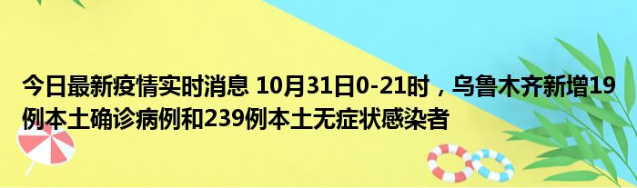 今日最新疫情实时消息 10月31日0-21时,乌鲁木齐新增19例本土确诊病例和239例本土无症状感染者