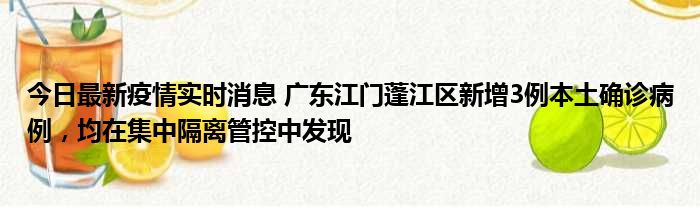今日最新疫情实时消息 广东江门蓬江区新增3例本土确诊病例,均在集中隔离管控中发现