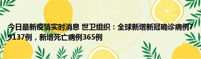 今日最新疫情实时消息 世卫组织:全球新增新冠确诊病例79137例,新增死亡病例365例