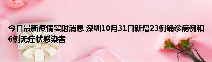 据深圳卫健委,10月31日0-24时,深圳新增23例新冠肺炎确诊病例和6例新冠病毒无症状感染者
