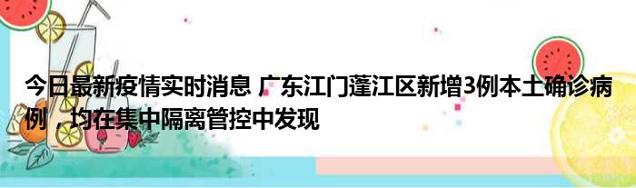 今日最新疫情实时消息 广东江门蓬江区新增3例本土确诊病例,均在集中隔离管控中发现