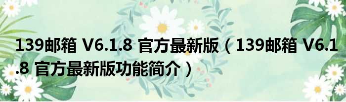 139邮箱 V6.1.8 官方最新版(139邮箱 V6.1.8 官方最新版功能简介)
