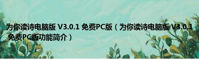 为你读诗电脑版 V3.0.1 免费PC版(为你读诗电脑版 V3.0.1 免费PC版功能简介)