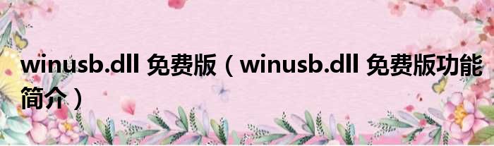 winusb.dll 免费版(winusb.dll 免费版功能简介)