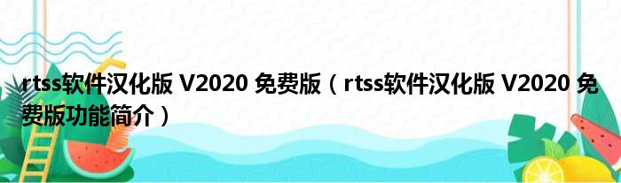 rtss软件汉化版 V2020 免费版(rtss软件汉化版 V2020 免费版功能简介)
