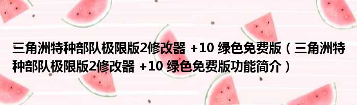 三角洲特种部队极限版2修改器 +10 绿色免费版(三角洲特种部队极限版2修改器 +10 绿色免费版功能简介)