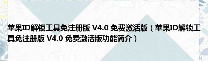 苹果ID解锁工具免注册版 V4.0 免费激活版(苹果ID解锁工具免注册版 V4.0 免费激活版功能简介)