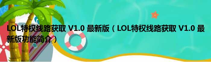 LOL特权线路获取 V1.0 最新版(LOL特权线路获取 V1.0 最新版功能简介)