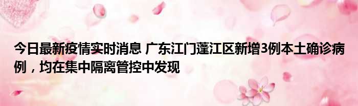 今日最新疫情实时消息 广东江门蓬江区新增3例本土确诊病例,均在集中隔离管控中发现