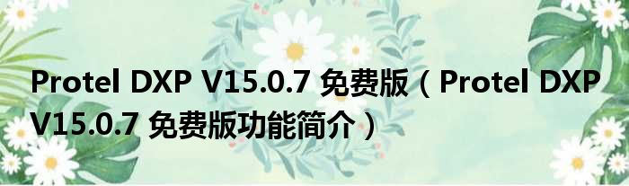Protel DXP V15.0.7 免费版(Protel DXP V15.0.7 免费版功能简介)