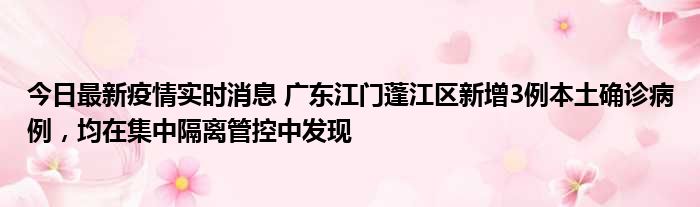 今日最新疫情实时消息 广东江门蓬江区新增3例本土确诊病例,均在集中隔离管控中发现