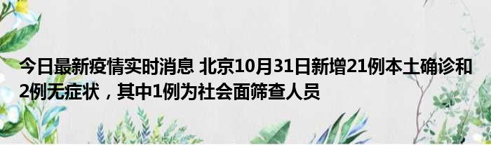 今日最新疫情实时消息 北京10月31日新增21例本土确诊和2例无症状,其中1例为社会面筛查人员
