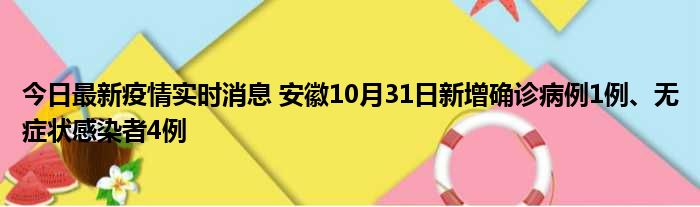 今日最新疫情实时消息 安徽10月31日新增确诊病例1例、无症状感染者4例