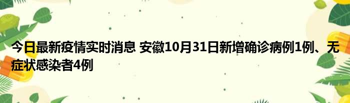 今日最新疫情实时消息 安徽10月31日新增确诊病例1例、无症状感染者4例