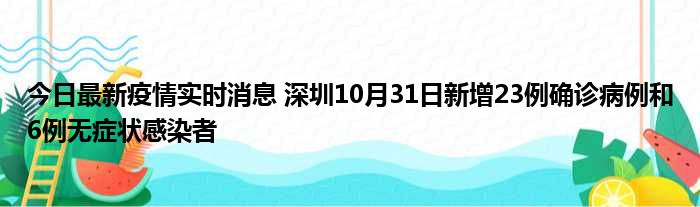 据深圳卫健委,10月31日0-24时,深圳新增23例新冠肺炎确诊病例和6例新冠病毒无症状感染者