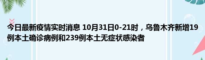 今日最新疫情实时消息 10月31日0-21时,乌鲁木齐新增19例本土确诊病例和239例本土无症状感染者