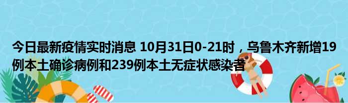 今日最新疫情实时消息 10月31日0-21时,乌鲁木齐新增19例本土确诊病例和239例本土无症状感染者