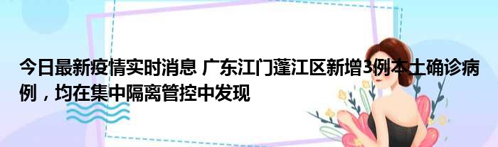 今日最新疫情实时消息 广东江门蓬江区新增3例本土确诊病例,均在集中隔离管控中发现