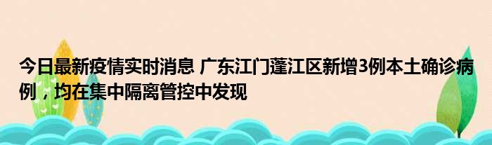 今日最新疫情实时消息 广东江门蓬江区新增3例本土确诊病例,均在集中隔离管控中发现