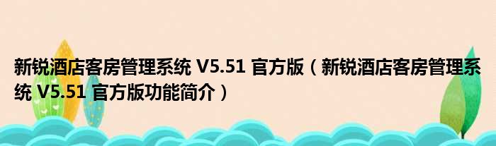 新锐酒店客房管理系统 V5.51 官方版(新锐酒店客房管理系统 V5.51 官方版功能简介)