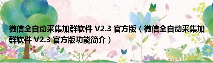 导读 大家好,关于微信全自动采集加群软件 V2 3 官方版,微信全自动采集加群软件 V2 3 官方版功能简介这个很多人还不知道,小勒来为大家解答以