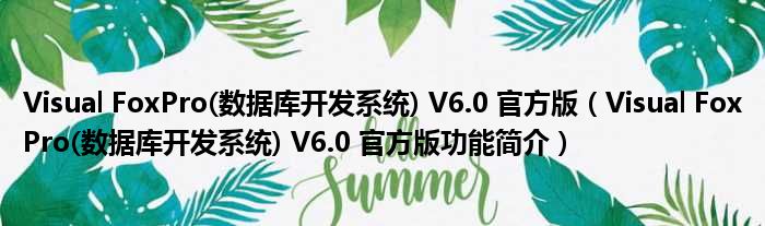 Visual FoxPro(数据库开发系统) V6.0 官方版(Visual FoxPro(数据库开发系统) V6.0 官方版功能简介)